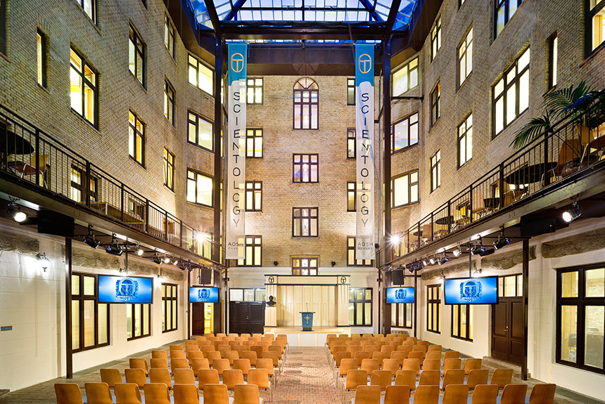 Kirken i København, Danmark, leverer avanceret religiøs service til scientologer fra mere end 50 nationer.