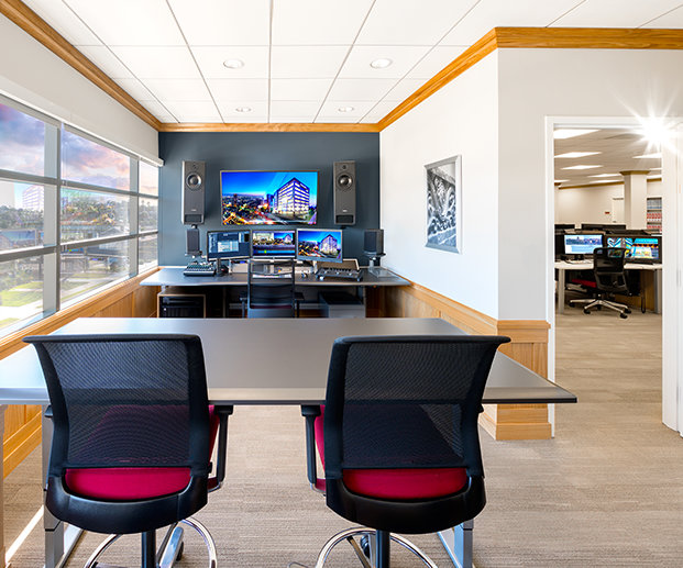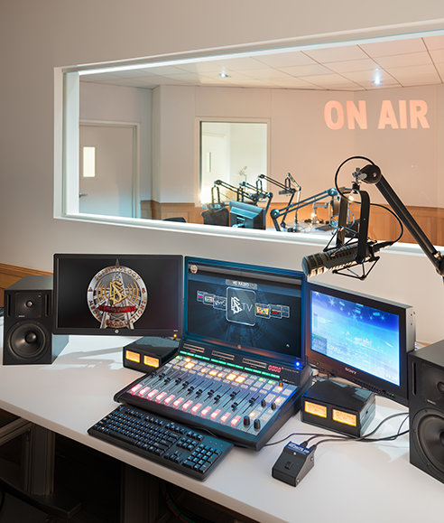 - Der er avancerede faciliteter til hver eneste form for medie – film, tv, internet, sociale medienetværk, podcasts, videostreaming, radio, kabel- og satellit-tv – og det kan alt sammen tilpasses enhver fremtidig udvikling inden for medieproduktion.