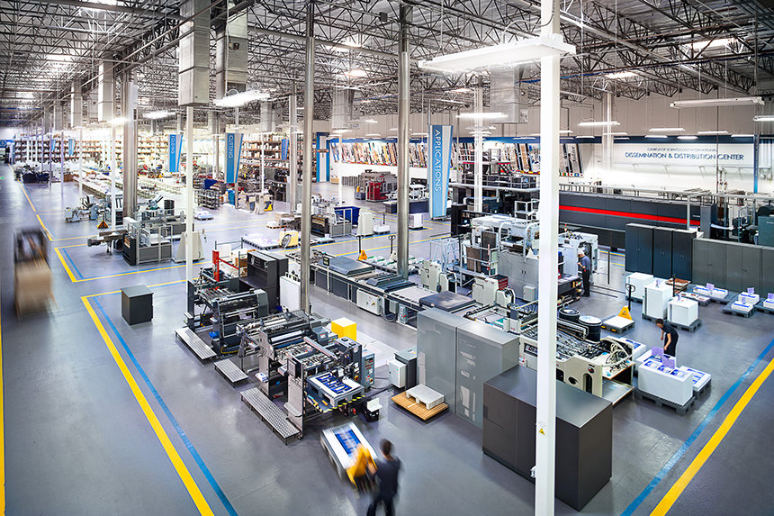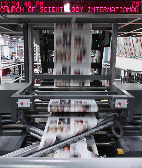 Det helt centrale i trykkeriet er en specialbygget 121 ton rotationspresse. Den trykker blandt andet kirkens tidsskrifter på 15 sprog, så de er klar til udsendelse til millioner af mennesker over hele verden. Trykkemaskinen er udstyret til at klare mange forskellige typer opgaver, og den kan for eksempel automatisk skifte mellem at trykke på forskellige sprog. Den trykker med en hastighed på 55.000 sider i timen. Centeret har både almindelige trykkemaskiner til arkfødning og digitale trykkemaskiner til produktionen af de hundrede tusinder af informationsmaterialer, som kirke-organisationerne bruger til at introducere deres lokalsamfund til Scientology religionen og dens servicer.