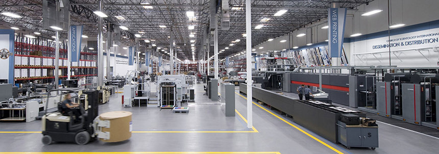 Det nye 17.000 kvadratmeter store Internationale Disseminerings- og Distributionscenter for Scientology Kirken er en enestående trykkeri- og produktionsfacilitet. Det huser fremstilling, distribution og administration – det hele under ét tag – og det betjenes udelukkende af medarbejdere fra kirken. Det nye center fremstiller dissemineringsmaterialer til de mere end 10.000 Scientology kirker, missioner og tilknyttede grupper over hele verden og gør det muligt for disse organisationer at imødekomme den stadigt stigende efterspørgsel efter Scientology service og programmer.