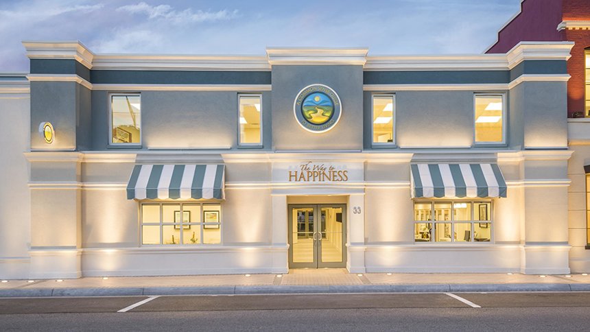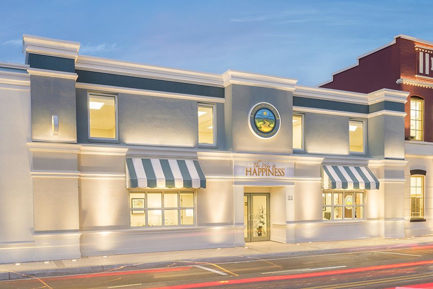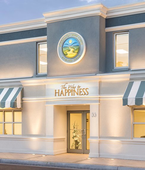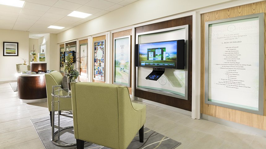 Clearwaters Vejen til lykke-stiftelse inkluderer kontorer til frivillige, informations-displays til at introducere besøgende til hvert element i kampagnen, og et seminarlokale hvor grupper og enkeltpersoner kan uddanne sig til at levere pensummet.