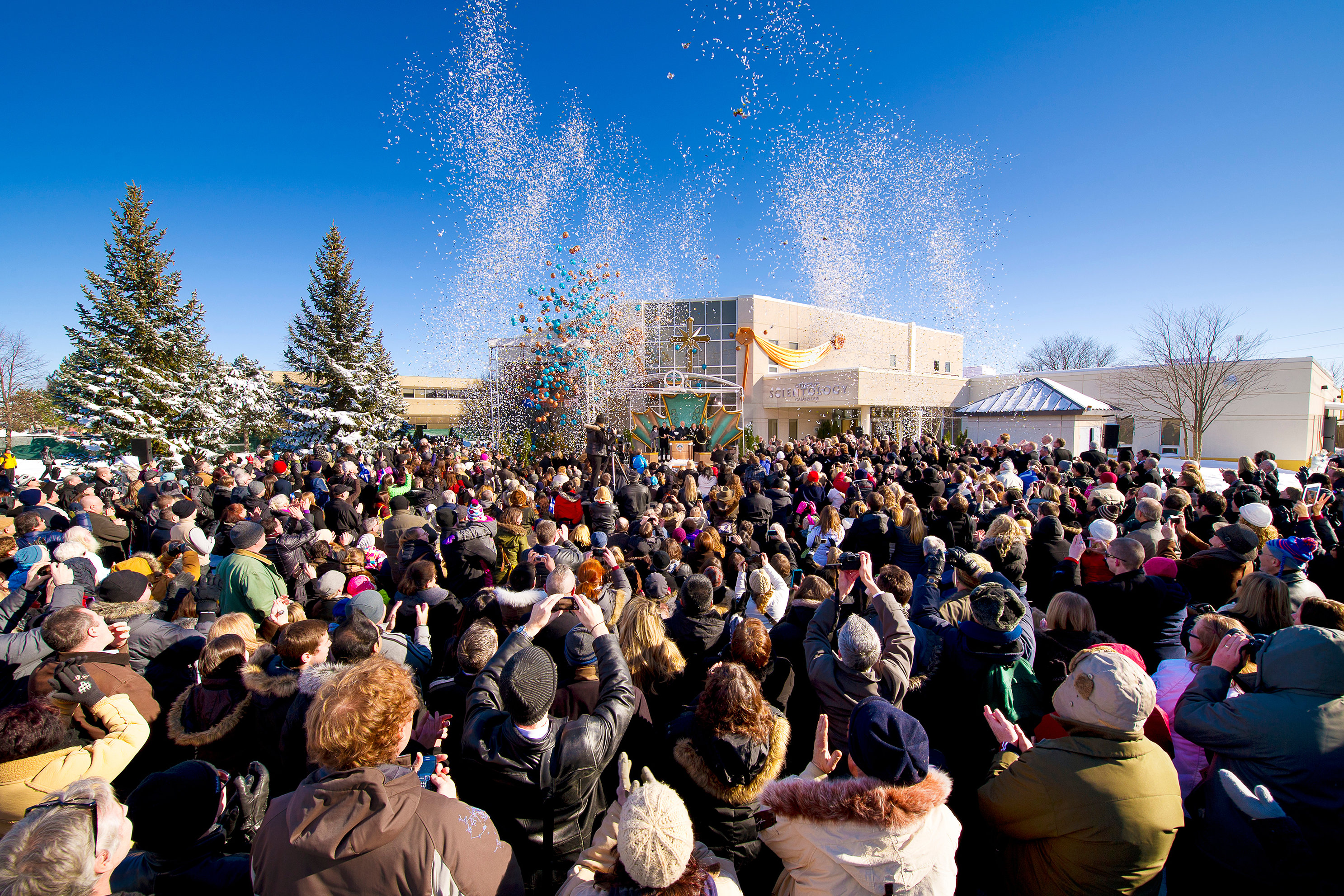 Scientologister og gæster fra hele området samles for at fejre åbningen af en Scientology Kirke, der betjener de tre byer Cambridge, Kitchener og Waterloo.