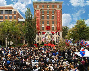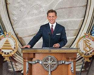Men det, som gjorde dagen virkelig betydningsfuld, var tilstedeværelsen og talen fra David Miscavige, som fortalte om både L. Ron Hubbards og kirkens lange historie i landets hovedstad. Nærmere bestemt og med reference til både amerikansk historie og kultur talte han om ”en uafhængighedserklæring, hvori det blev skrevet, at alle mennesker har visse umistelige rettigheder, herunder retten til liv og frihed og til at søge efter lykken.