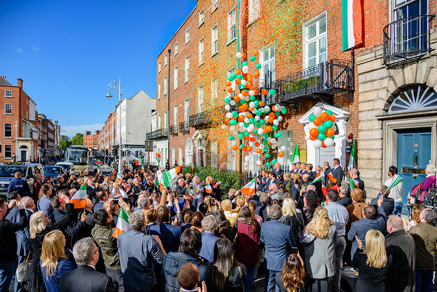 Det var på dette legendariske sted, at det festlige arrangement med snoreklipning og åbent hus fandt sted lørdag den 15. oktober på Merrion Square North nr. 4. Denne fremtrædende bygning er det nye hjem for Scientology Kirkens Kontor for nationale anliggender i Irland, og den officielle åbning blev foretaget af kirkens ledere og medarbejdere.