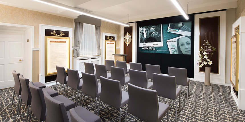 Kontoret for nationale anliggender er udstyret med et informationscenter med interaktive programmer og audiovisuelle displays, hvor besøgende kan lære om Scientologys humanitære og sociale programmer og meget mere. Centerets yderst avancerede teknologi gør det muligt at vise levende og detaljerede illustrationer af religionens grundprincipper og af dens mål om fred, sundhed og lykke blandt alle folkeslag. Disse materialer forklarer detaljeret om kirkens omfattende arbejde med at fremme religiøs tolerance og forståelse, med at opfordre til åndelig bevidsthed og med at bidrage til udviklingen af tværreligiøst samarbejde, som opbygger lokalsamfundene og styrker respekten for alle mennesker. Informationer om kirkens arbejde for en stoffri verden, for uddannelsesmuligheder og for en mere fredelig sameksistens findes i informationscenteret.