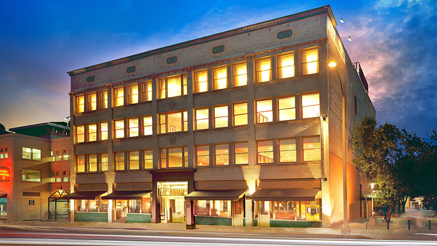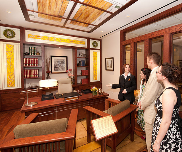 Dette monument fra det forrige århundredskifte, som ligger i en af de bydele i Los Angeles og omegn, som har mest fodgængertrafik, er bevaret i en enestående blanding af gammelt og nyt. Dens arv afspejles i det restaurerede eksteriør i Beaux Arts, dens klassiske fire-etagers atriumgård med ovenlysvinduer samt dens indretning og mosaikvinduer i Arts & Crafts-stil.
