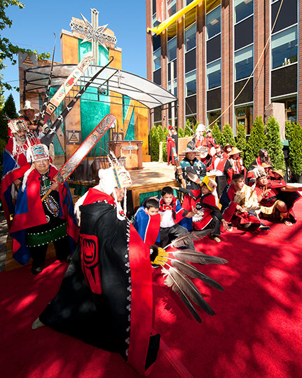 Duwamish-stammens formand Cecile Hansen, en efterkommer af høvding Seattle, som byen er opkaldt efter, startede begivenheden med en århundredgammel ceremoni, der bød kirken velkommen til dens nye hjem.
