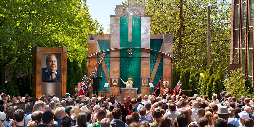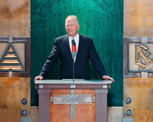 David Miscavige, Bestyrelsesformanden for Religious Technology Center og Scientology religionens kirkelige leder, forrettede ceremonien og anerkendte de scientologer, der stod i spidsen for bestræbelserne for at bygge den nye kirke.