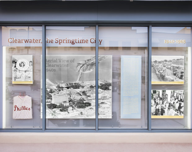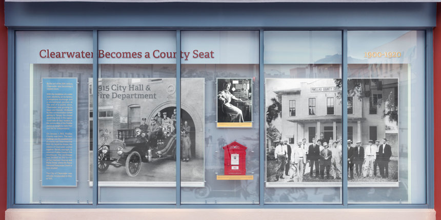 Som en hyldest til Clearwaters historie har Kirken oprettet en permanent udstilling, der strækker sig langs ydersiden af Coachman-bygningen på Cleveland Street og Fort Harrison Avenue. Udstillingen har billeder, informationsplancher og artefakter, der viser byens kulturarv fra dens tidligste dage til nutiden. Blandt de mange milepæle, udstillingen viser, er: