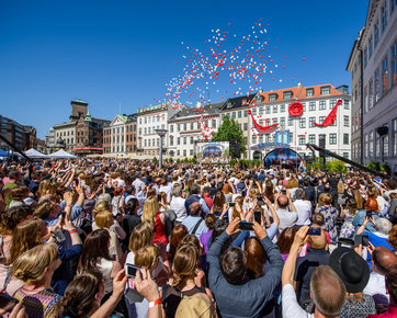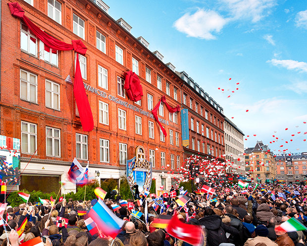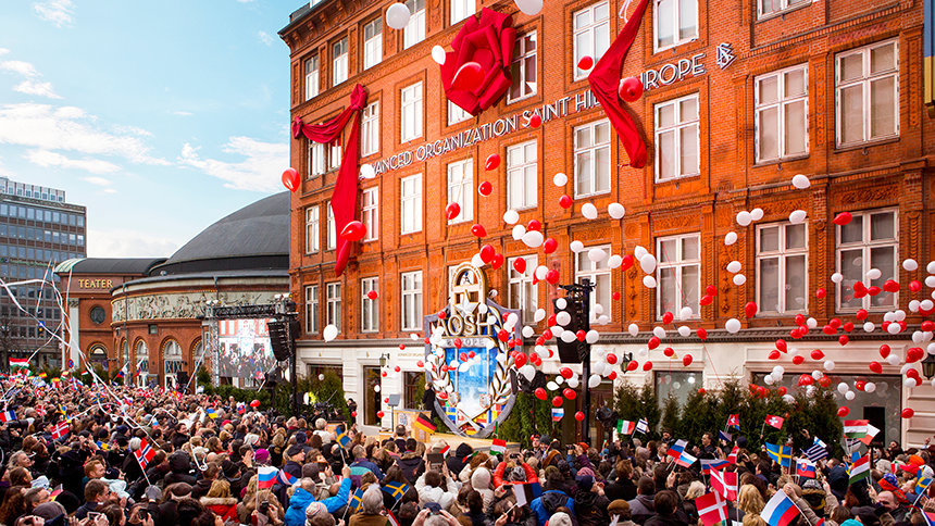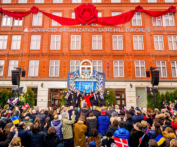Sådan var scenen langs Jernbanegade i København til indvielsen af den nye ideelle europæiske indgangsport til OT: den ideelle Avancerede Organisation og Saint Hill Europa (AOSHEU).