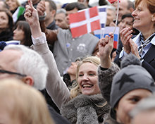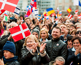 Farverne fra mere end 30 europæiske landes flag bølgede i den danske vinterbrise ...
