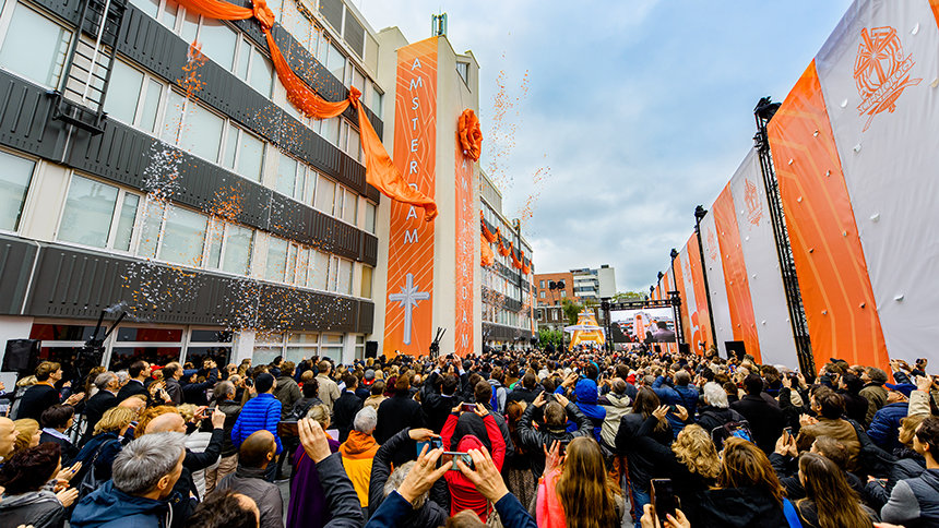 Maarten Lubbers, formand for Together One Amsterdam, talte om kirken som et nyt medlem til at forbedre undervisningsinstitutioner, firmaer og organisationer på ”den klogeste gade” i Holland: ”Alle har brug for et fristed, der tilbyder afklarethed og et sted, hvor man kan være uforstyrret med sig selv og sin familie og venner. Folk oplever tab og tragedier i deres liv og ønsker, og har brug for, at reflektere. Og jeres nye hjem er som en udvidelse af gaden, dørene er åbne, og folk er imødekommende. Og jeg mener, at det her er et sted, hvor alle vil blive mødt med medfølelse og blive budt velkommen med åbne arme – fordi dette er et center, der virkelig er helliget til at inspirere og opløfte vores hollandske samfund.”
