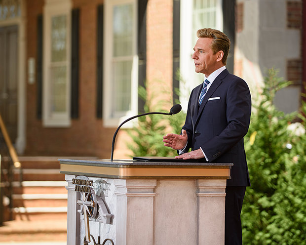 ”I dag ærer vi en fortælling om skabelsen af Ideelle Orger, der står som et eksempel på ånden i en Ideel Org,” sagde David Miscavige, lige før han klippede den store snor over og dermed officielt åbnede organisationen – den ideelle Scientology kirke Atlanta.