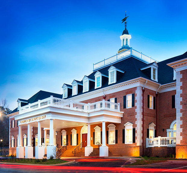 Kirkens nye hjem ligger inden for storbyen Atlanta og byen Sandy Springs, på toppen af en bakke med udsigt over den travle Roswell Road. Palæet i Williamsburg-stil på 4.200 kvadratmeter udtrykker ”Sydstaternes charme” og byder alle fra Atlanta og længere væk velkommen.
