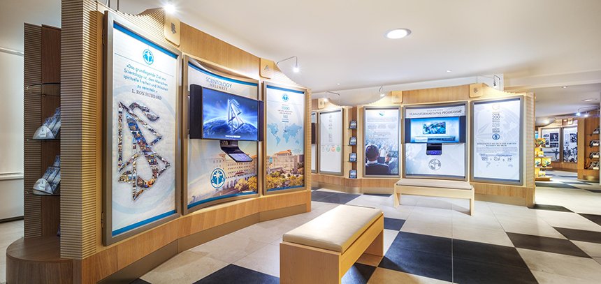 Den nye Ideelle Org i Basel giver alle besøgende en introduktion til Dianetics og Scientology, og det begynder med et informationscenter. Dets udstilling med mere end 500 film viser Dianetics’ og Scientologys grundlæggende anskuelser og udøvelser og fortæller om L. Ron Hubbards liv og levned.