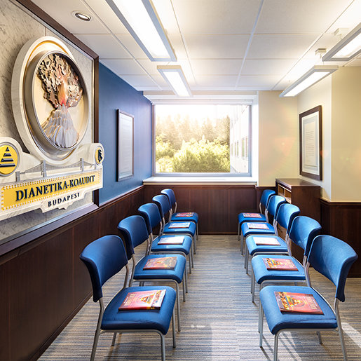 Den nye Ideelle Org i Budapest giver alle besøgende en introduktion til Dianetics og Scientology, og det begynder med informationscenteret. Dets udstilling, der indeholder over 500 film, viser Scientology religionens grundlæggende anskuelser og udøvelser og fortæller om L. Ron Hubbards liv og levned.