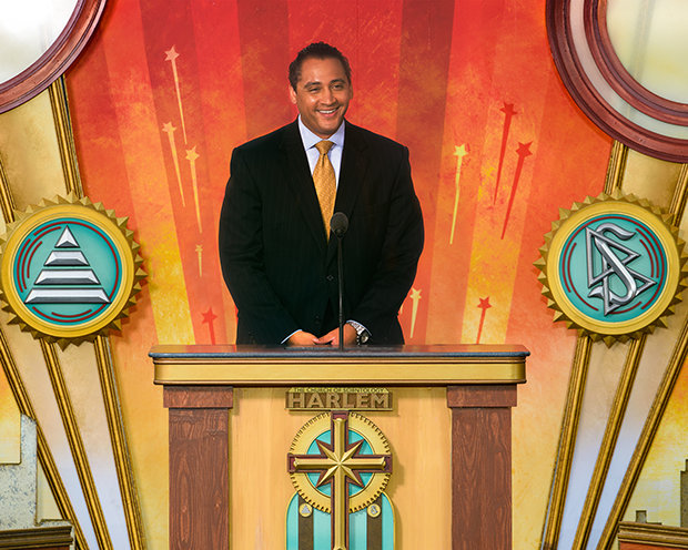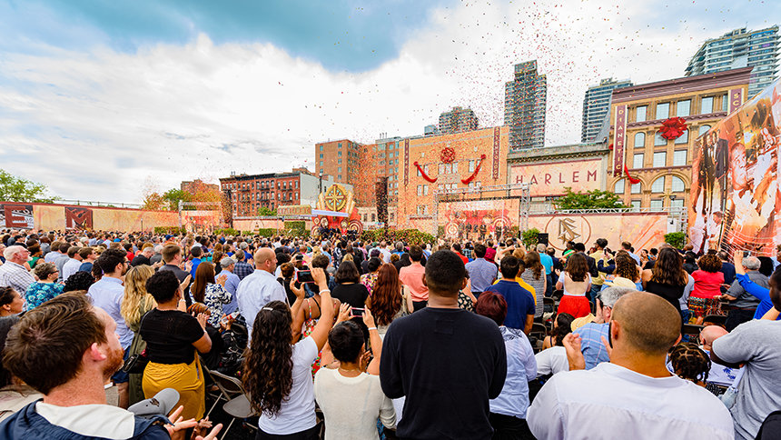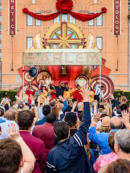 En lind strøm af regn holdt op – som på et stikord – få øjeblikke før ceremonien begyndte. ”Der findes intet sted som Harlem,” sagde David Miscavige, bestyrelsesformand for Religious Technology Center og den kirkelige leder af Scientology religionen. ”Jeres renæssancedigtere, jeres dramatikere, jeres malere, jeres forfattere og musikere, ja, bare det at sige navnene gør én ydmyg: Duke Ellington, Cab Calloway, Billie Holiday, Claude McKay og Louis Armstrong. Hvad andet kan man sige end: Tag Harlem ud af amerikansk historie, og alt andet bliver bare lunkent.”