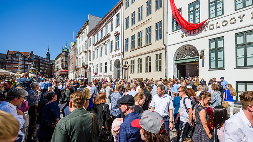 Og på en herlig dansk eftermiddag samledes mere end 2.500 scientologer og gæster på det brolagte torv, hvor de fejrede en ny side i historien for en af Skandinaviens ældste og rigeste kulturhovestæder samt det næste trin i kirkens vækst.