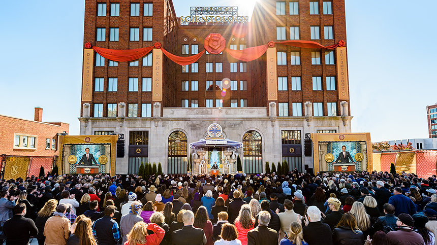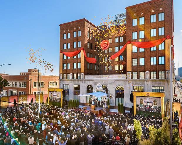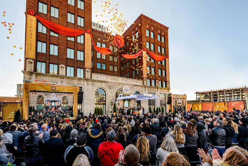 På en efterårsdag med en baggrund af sollys samledes en flok på mere end tusind ved 18th og Grand for at byde velkommen til en bemærkelsesværdig ny Scientology Kirke, der åbnede sine døre.