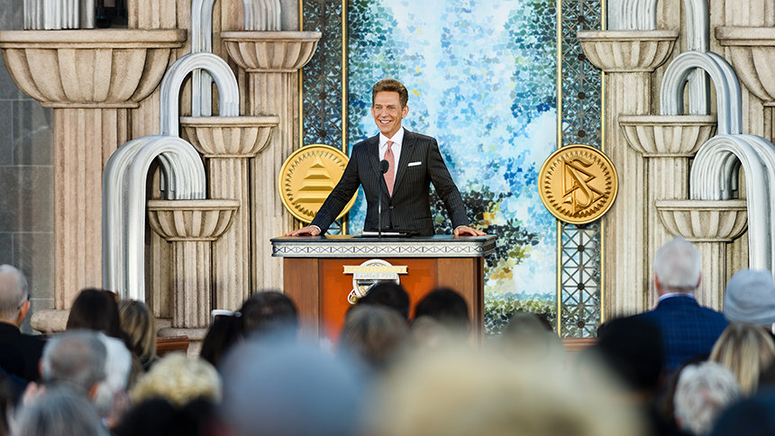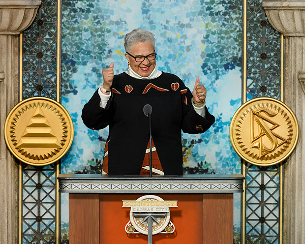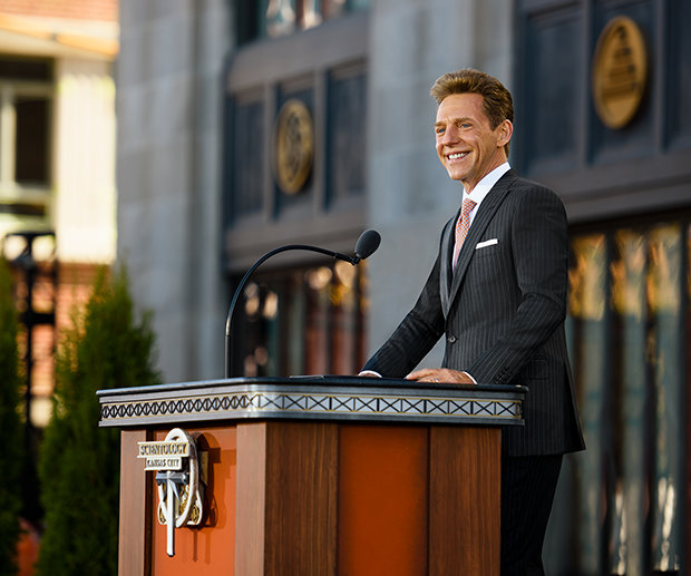 David Miscavige, Scientology religionens kirkelige leder, forestod indvielsesceremonien. I sin åbningstale understregede David Miscavige dagens joviale ånd til ære for kirkens nye hjem i Midtvesten: ”Kansas City, hvor, som de siger, folk taler det reneste ’amerikanske’ i alle 50 stater, og barbecuen er lige så god, som den kan blive noget sted i den gastronomiske galakse. Dette er også en by, hvor ’arbejdsetikken’ stadig er, hvad den var, før ordet ’etik’ mistede sin betydning. Så ja, Kansas City, så kører vi!”