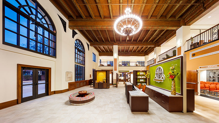 Den pragtfuldt restaurerede bygning, opført i 1926, er et vartegn for byen og registreret som kulturarv af national betydning. Med amerikansk Beaux Arts-design hele vejen igennem er dets storslåede symmetriske ydre en typisk grundpille for de tidlige 1900-tals bygninger, der stadig definerer amerikanske byer i dag. Det centrale element er uden tvivl lobbyen i stueetagen, hvor loftet går to etager op, og som er udsmykket med fem unikke typer marmor, et bjælkeloft håndmalet i azteker-inspireret design og lysekroner af imponerende dimensioner, smedet i messing og smedejern – det er en imponerende velkomst til en kirke, der helt er helliget at opløfte sit lokalsamfund.