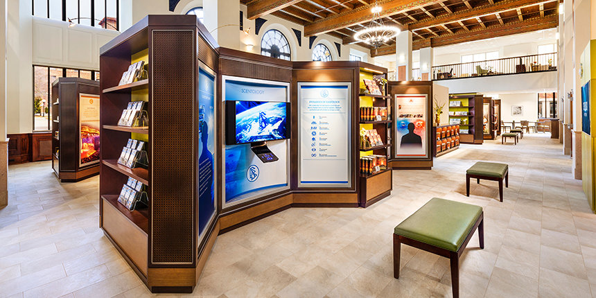 Da de gik ind i den nye Scientology Kirke Kansas City, blev de besøgende budt velkommen af et Informationscenter, der præsenterer en introduktion til Dianetics og Scientology. Dets udstilling, med mere end 500 film på 17 sprog, viser Scientology religionens anskuelser og udøvelser og fortæller om grundlægger L. Ron Hubbards liv og arv.