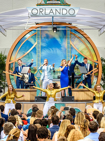 På denne forårseftermiddag spillede orkesteret i livligt tempo et soundtrack, der var sat sammen til moderne hiphop af ideer fra områdets forlystelsespark-menu. Dignitarerne, der var til stede, repræsenterede den samme stemning, og støttede op om kirken i Orlandos arv og opfordrede medlemmer til at bringe ”magi” til deres lokalsamfund.