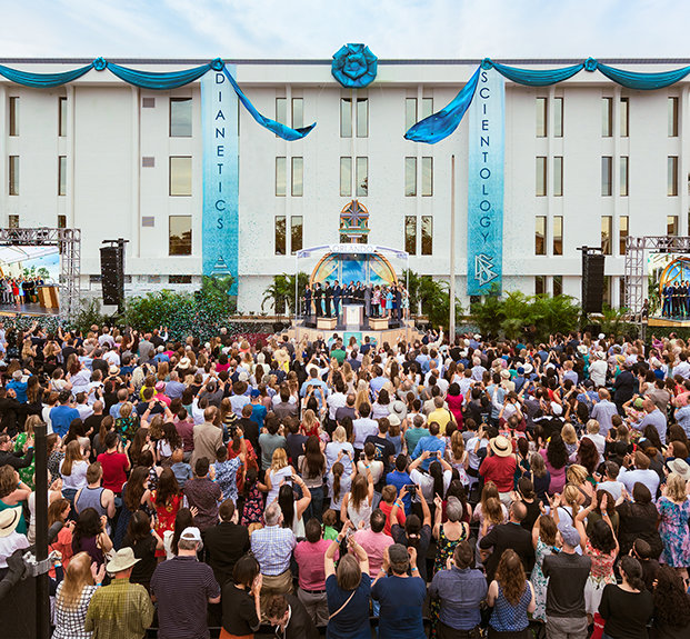 Men kun få minutter fra Orlandos forlystelsespark-motorvej, International Drive, vil man kunne se den nyeste ”skinnende stjerne”, der allerede blinker i Kirkens voksende intergalaktisk galakse. Den kæmpe ejendom ligger på næsten 1,6 hektar midt i Floridas største indlandsby, langs kysterne af Lake Ellenor. På dette charmerede sted, hvor latter og fantasi er tidløst, samledes en skare på 2.000 scientologer og venner under det centrale Floridas middagssol, lørdag den 12. maj, for at fejre indvielsen af en ny Scientology kirke.