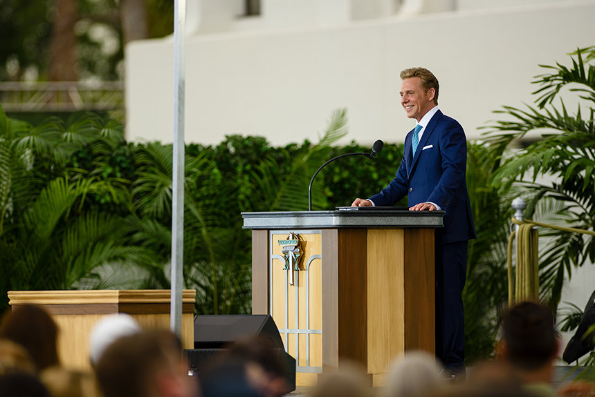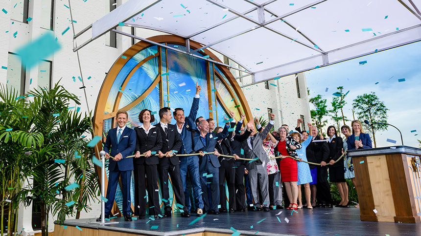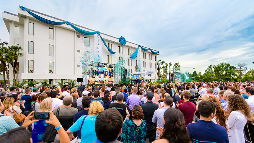 På denne forårseftermiddag spillede orkesteret i livligt tempo et soundtrack, der var sat sammen til moderne hiphop af ideer fra områdets forlystelsespark-menu. Dignitarerne, der var til stede, repræsenterede den samme stemning, og støttede op om kirken i Orlandos arv og opfordrede medlemmer til at bringe ”magi” til deres lokalsamfund.