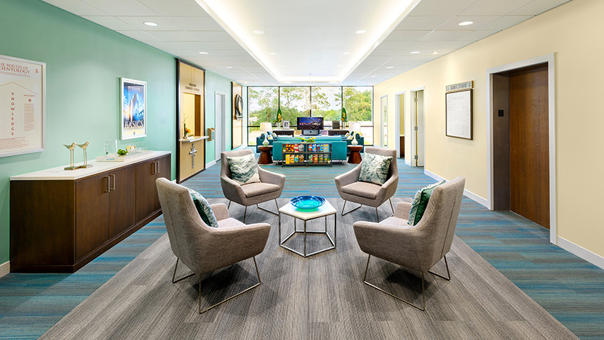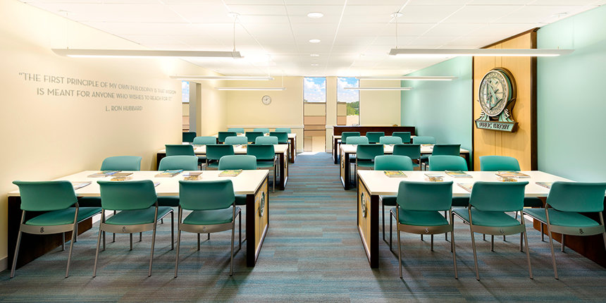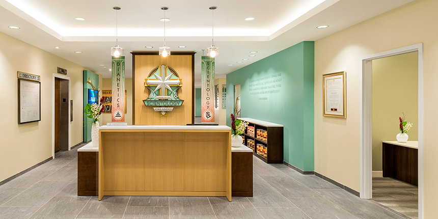 Det første kendetegn som besøgende og medlemmer ser, når de nærmer sig vores nye fire-etagers Scientology Kirke I Orlando er dens facade fra midten af dette århundrede. Ved ankomsten træder besøgende ind i et lyst og moderne rum, der er præget af de solfyldte omgivelser i Florida. Lyse turkise, sandfarvede og grå toner bringer en afklaret følelse til Informationscenteret for publikum, hvor en introduktion til Dianetics og Scientology præsenteres. Dets udstilling med mere end 500 film på 17 sprog viser Dianetics’ og Scientologys grundlæggende anskuelser og udøvelser, og de fortæller om grundlægger L. Ron Hubbards liv og arv.