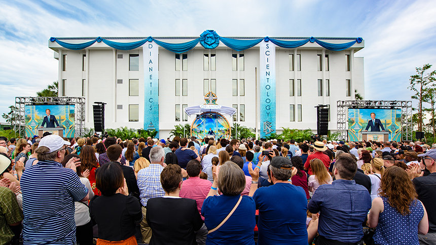 I anerkendelse af denne specielle begivenhed fortalte David Miscavige, den kirkelige leder af Scientology religionen, at: ”Ud over alt andet, som jeres by er kendt for, er der endnu en måde at fortælle denne historie på, og det følger fra en anderledes slags magi. Fordi når det indvielsesbånd falder, rejser en ny Scientology kirke sig og med det et rige af åndelig frihed, hvor hver borger hersker.”