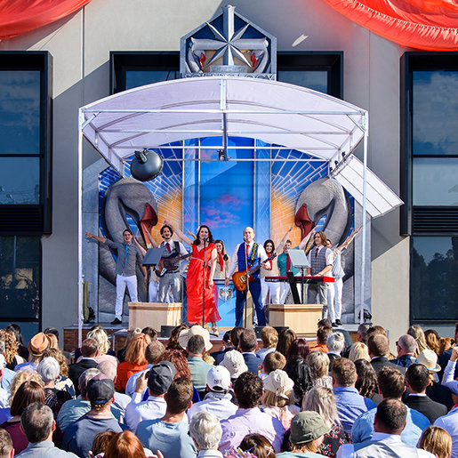 I den selv samme ånd, blev kirkens åbning indviet med den traditionelle australske nationalsang, ”Advance Australia Fair”, efterfulgt af en opløftende version af en lokal sejrssang, som opsummerede den dristige og initiativrige ånd fra Perths scientologer.
