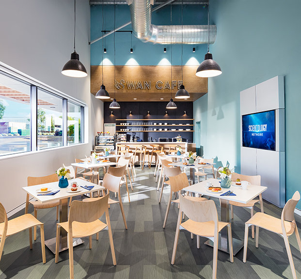 Caféen udgør et mødested for dem, der deltager i arrangementer, såvel som for medlemmer i pauser under deres Scientology servicer.