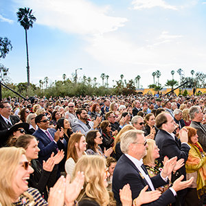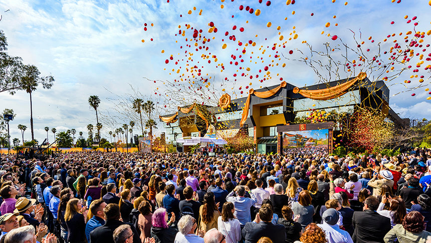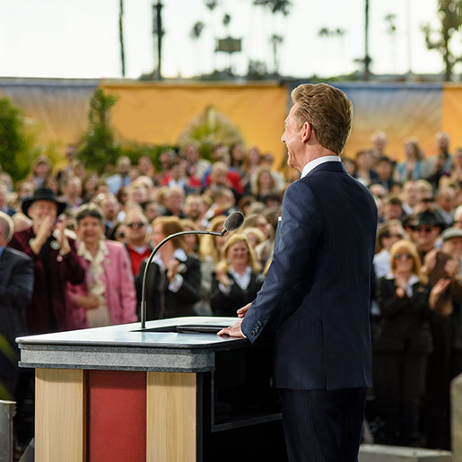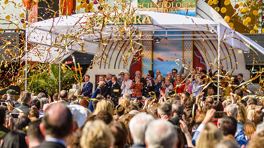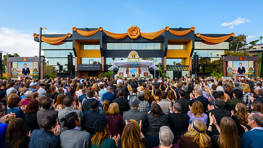 Den festlige stemning, der gennemstrømmede begivenheden, blev sat i bevægelse af en brise fra Stillehavet. David Miscavige, den kirkelige leder af Scientology religionen, førte an i festlighederne, og han fortalte de forsamlede, at bølgen, de ventede på, nu var ved at brydes: ”En perfekt bølge. En endeløs bølge. En bølge enhver kan ride på til højere plateauer af evne og åndelig udødelighed. Men selvfølgelig ved alle ikke, hvor kystlinjen ender og en livstids ridt begynder – hvilket er, hvor man kommer ind med en invitation til frihed og en lektion i, hvordan man fanger den bølge og aldrig bliver den samme igen.”