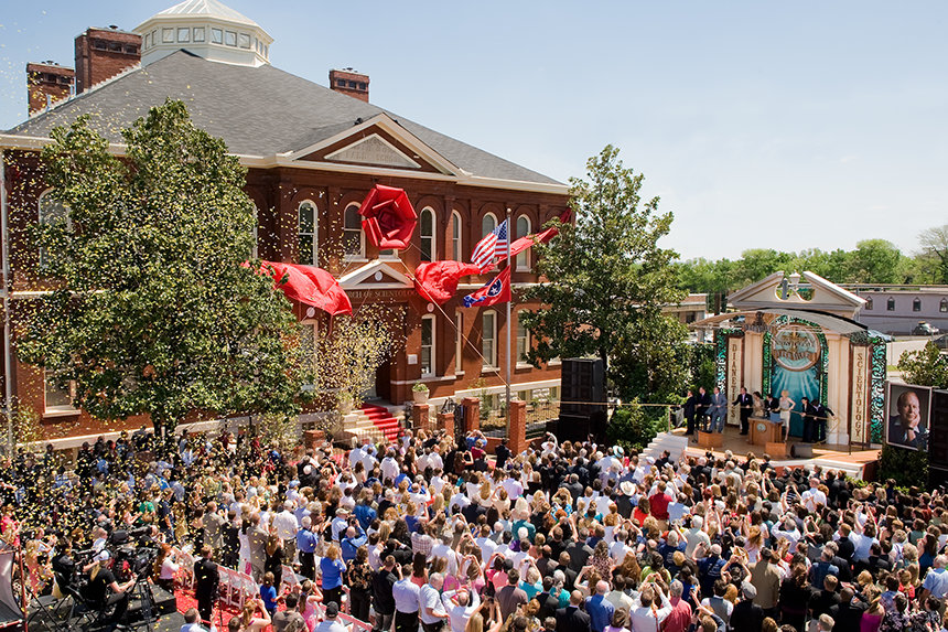 Og det er både, hvad denne nye kirke repræsenterer, og hvorfor vi er kommet til Nashville. Og mens Nashville er kendt som hjertet og sjælen i amerikansk musik, så lad byen nu realisere sin skæbne og skrive en sang, der vil opmuntre hvert eneste menneske.”