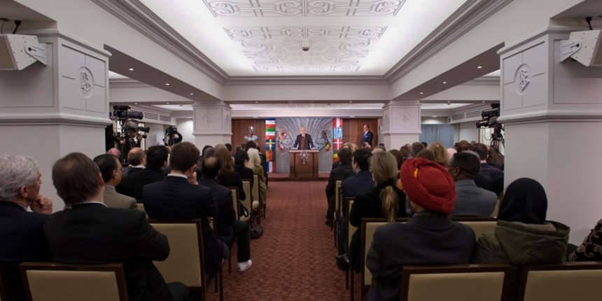 Fremtrædende gæstetalere, der deltog i indvielsen, omfattede Hugo Coveliers, senator i det belgiske parlament, professor Abolfazl Beheshti, professor i internationale relationer og energi-økonomi ved universitetet i Lille i Frankrig, Juan Ferreiro, vicegeneraldirektør for trossamfund i det spanske justitsministerium, Katalin Szomor, sagkyndigt medlem af narkotikakommissionen fra det ungarske parlament og tidligere national koordinator i narkotikaspørgsmål samt pastor Christopher Vonck, rektor på fakultetet for sammenlignende religionsstudier ved universitetet i Antwerpen.