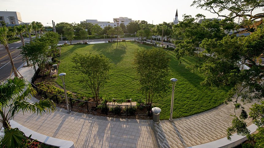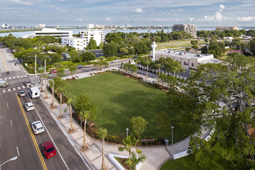 Lørdagens indvielse fejrede også afsløringen af Osceola Courtyard, en grøn oase som er et holdepunkt for samfundet og forskønner byen på hjørnet af Fort Harrison Avenue og Drew Street. Den vil blive udstyret med farverige pavilloner under ferie-events for at gøre alle de kirkesponserede humanitære programmer tilgængelige. Parken vil også være hjem for Winter Wonderland, en populær familietradition stillet til rådighed for lokalsamfundet af scientologer gennem de sidste 25 år.