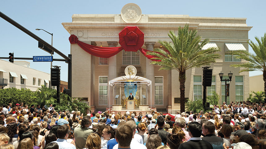 ”I dag er et vendepunkt for byen Clearwater, hjemsted for vores åndelige hovedkvarter,” erklærede David Miscavige, bestyrelsesformand for Religious Technology Center, i sin tale til den forsamlede skare.