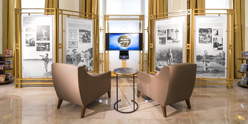 Designet som et informations- og mødested til ubegrænset brug, byder dette informationscenter på en fuldstændig biografisk udstilling, der belyser det ekstraordinære liv og arven fra Scientologys grundlægger L. Ron Hubbard – fra hans barndom til hans karriere som forfatter før fremkomsten af Dianetics og Scientology, såvel som hans revolutionerende arbejde med at etablere og definere selve religionen.
