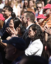 ”Og i dag vil jeg acceptere en lille Langhorn-stolthed i at fejre endnu et stort skridt i retning af at holde vores nabolag som det Bedste af det Bedste.” Derefter råbte han universitetsvendingen ”Hook ’em Horns!” til den brølende menneskemængde.