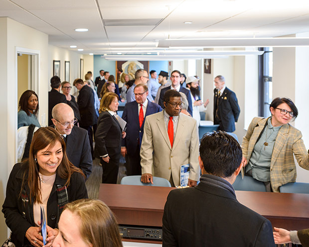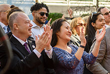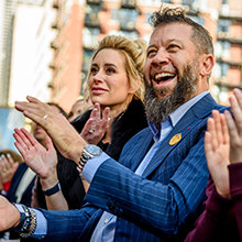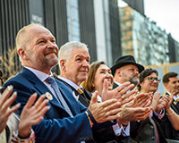 Blandt gæstetalerne var der advokat og rådgiver til byen hr. Rob Fioretti. ”Chicago står stolt – en dristig en, der står hårdt med en af verdens mest genkendelige horisonter,” fortalte han menneskemængden. ”De designs, der skabes her, definerer Amerikas horisont og, bestemt, verdens horisont. Og det, der er fantastisk ved Scientology Kirken, er, at I forstår det. I forstår denne bys karakter på så mange niveauer.