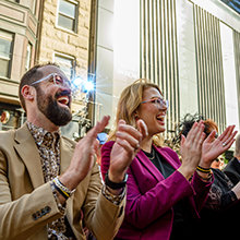 ”Som byrådsmedlem kæmpede jeg sammen med jer for at sikre denne kulturarv. Og gennem vores med-indsats så jeg, at Kirken restaurerede dette vartegn til sin pragt fra 1915. Mere end 25.000 timer blev investeret – femogtyve tusind timer. Og lad mig sige til jer: Hvert sekund, minut og time er bevis på, at I er en værdsat og betroet vogter af denne by!”