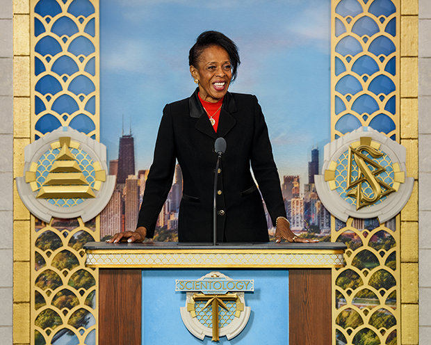 Dr. Gwen Appleberry, der er Borgerådgiver for Chicagos Politiafdeling og Uddannelsesnævn, talte om religionens Grundlæggers visdom: ”Jeg ved faktisk en smule om potentialet inden for disse døre. Ser I, for 47 år siden lagde jeg først øjnene på Dianetics,” den monumentale bog af Scientologys Grundlægger L. Ron Hubbard.