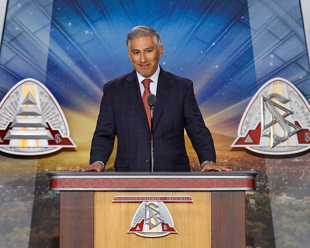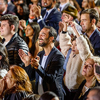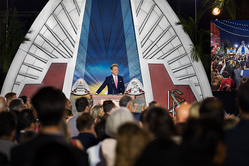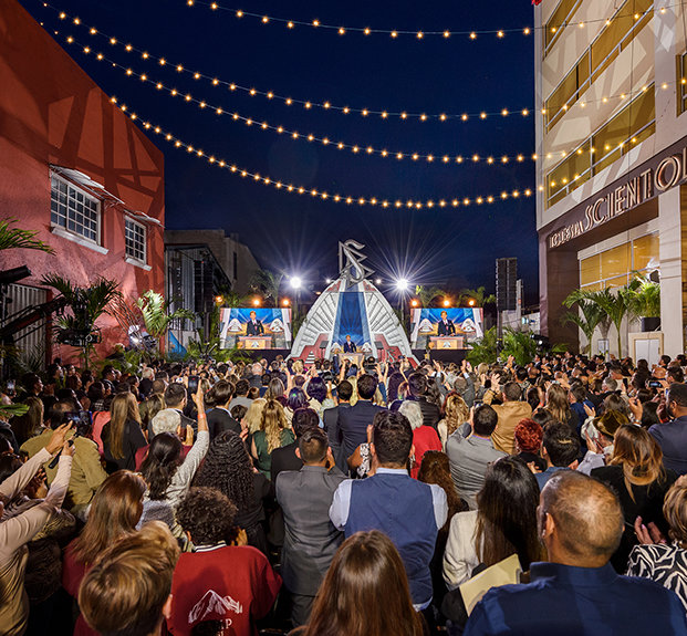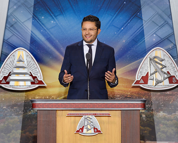 Denne stærke velkomst ankom med autoritet, da hr. David Miscavige, den kirkelige leder af Scientology religionen, indtog scenen for at tale til alle tilstedeværende. ”Husk, at den inderste essens og livets kraft i en Ideel Org er, som vores Grundlægger forestillede sig: ’En aktivitet, hvor mennesker kom for at opnå frihed, og hvor de havde tillid til at kunne opnå den.’ Det er det, vi fejrer i dag. Det er den gave, I giver. Og visionen, der blev gjort sand af jer, heltene i denne bevægelse, for at skabe denne Ideelle Org,” sagde hr. David Miscavige. ”Vil I gerne se historien bag udviklingen i denne latinamerikanske megaby? Tja, øjeblikket er over os – lige her og lige nu.”