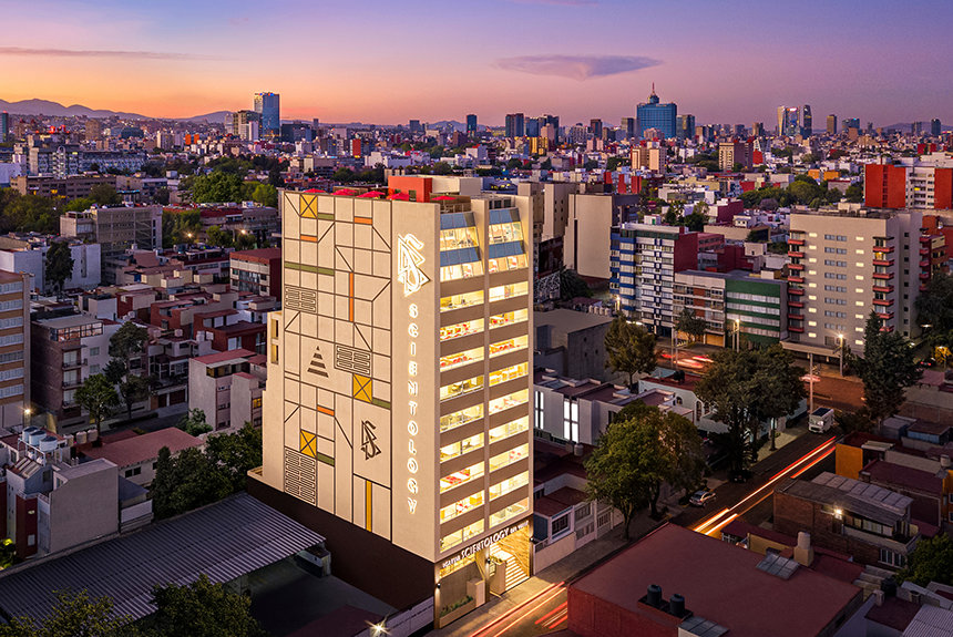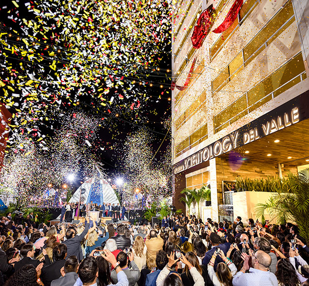 Prominent synlig fra halvanden kilometer væk fyldte festmusik og begejstret snak den 5.100 kvadratmeter store facilitet, da Del Valles nye Ideelle Org åbnede for at bebude den fortsatte ekspansion af religionen. Den nye 12-etagers Kirke ligger lige ved Avenue Universidad i Del Valle, dens tårnhøje, 80 fods oplyste Scientology skilt, der nu byder velkommen til den mest befolkede by på den vestlige halvkugle og den største spansktalende by i verden.
