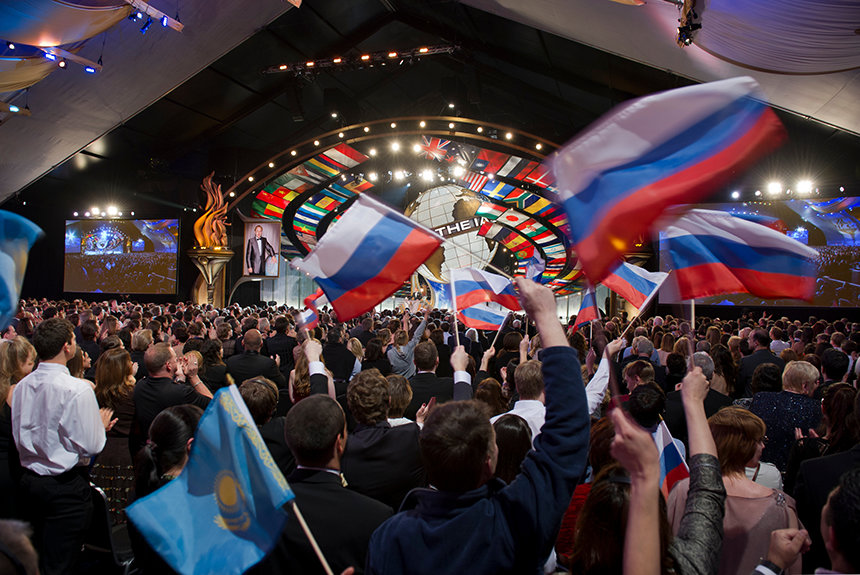Mere end 6.500 scientologer, der repræsenterede omkring 50 nationer, gik ind i den store sal for at fejre.