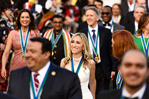 Årets modtagere af de tre IAS Frihedsmedaljer stod med løftet pande og understregede aftenens tema om ubøjelig dedikation mod opnåelsen af fred, uddannelse, anstændighed, social retfærdighed og en stoffri og kriminalitetsfri tilværelse på hele planeten. David Miscavige introducerede hver af dem individuelt og en videopræsentation pointerede deres usvigelige dedikation til menneskeheden: