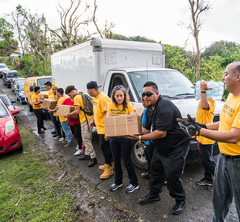 - I Puerto Rico, efter den dødelige orkan Maria ramte lige plet på øen, ankom Frivillige Hjælpere øjeblikkeligt for at levere mere end 150.000 vigtige forsyninger og drev efterfølgende en ”gør-det-selv”-solenergibevægelse for at oplyse omkring 300.000 hjem.