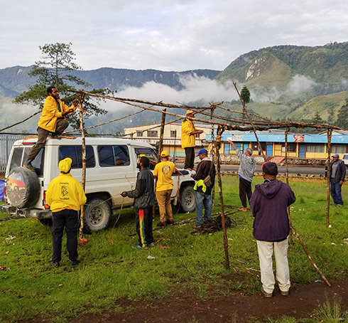 - Efter et jordskælv på 7,5 rystede Papua Ny Guinea, kom Frivillige Hjælpere flyvende med et eftersøgnings- og genoprettelses-program og landede med fem tons af madvarer og forsyninger og hjalp 18.000 øboere i 19 redningscentre.