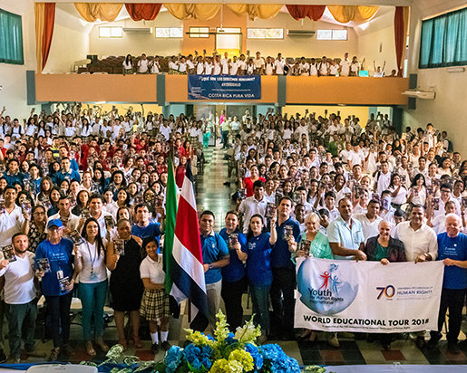 - I Costa Rica, hvor Unge for Menneskerettigheder-hæftet blev en officiel udgivelse fra landets VM-fodboldhold som skabte en bevægelse gennem alle 82 distrikter og nåede ud til 2 millioner mennesker i alt.